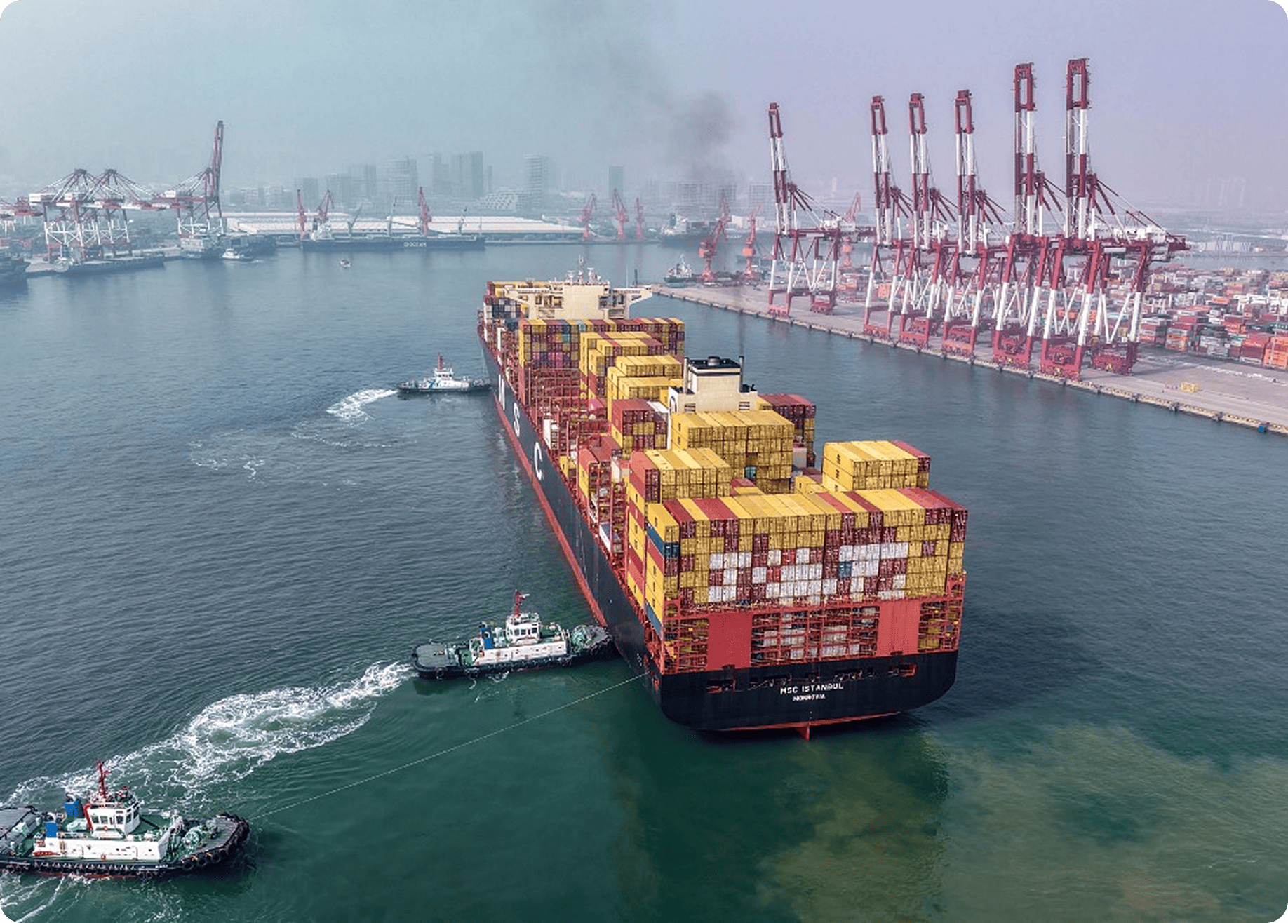 Cargo ship moves into a Chinese container port. CN-STR / AFP
