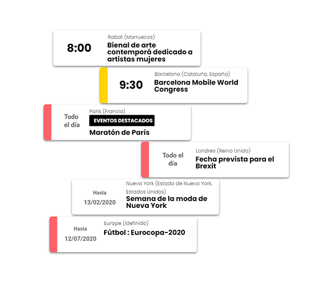 Fecha, hora, dirección, contacto, previsiones de cobertura, contenido producido... Encuentre en AFP Agenda todos los acontecimientos previstos recabados por nuestros 1.700 periodistas alrededor del mundo.