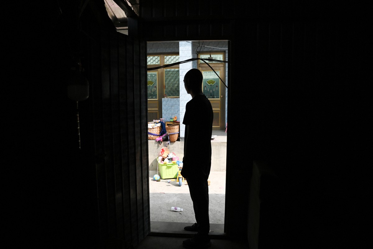 Cette photo prise le 3 avril 2025 montre un homme désigné sous le pseudonyme de Sun — un nom d’emprunt utilisé par l’AFP pour protéger son identité. Il est l’un des milliers de Chinois victimes des centres d’escroquerie au Myanmar. Il a été rapatrié dans son village en Chine après l’opération de répression de février 2025. © Greg Baker / AFP