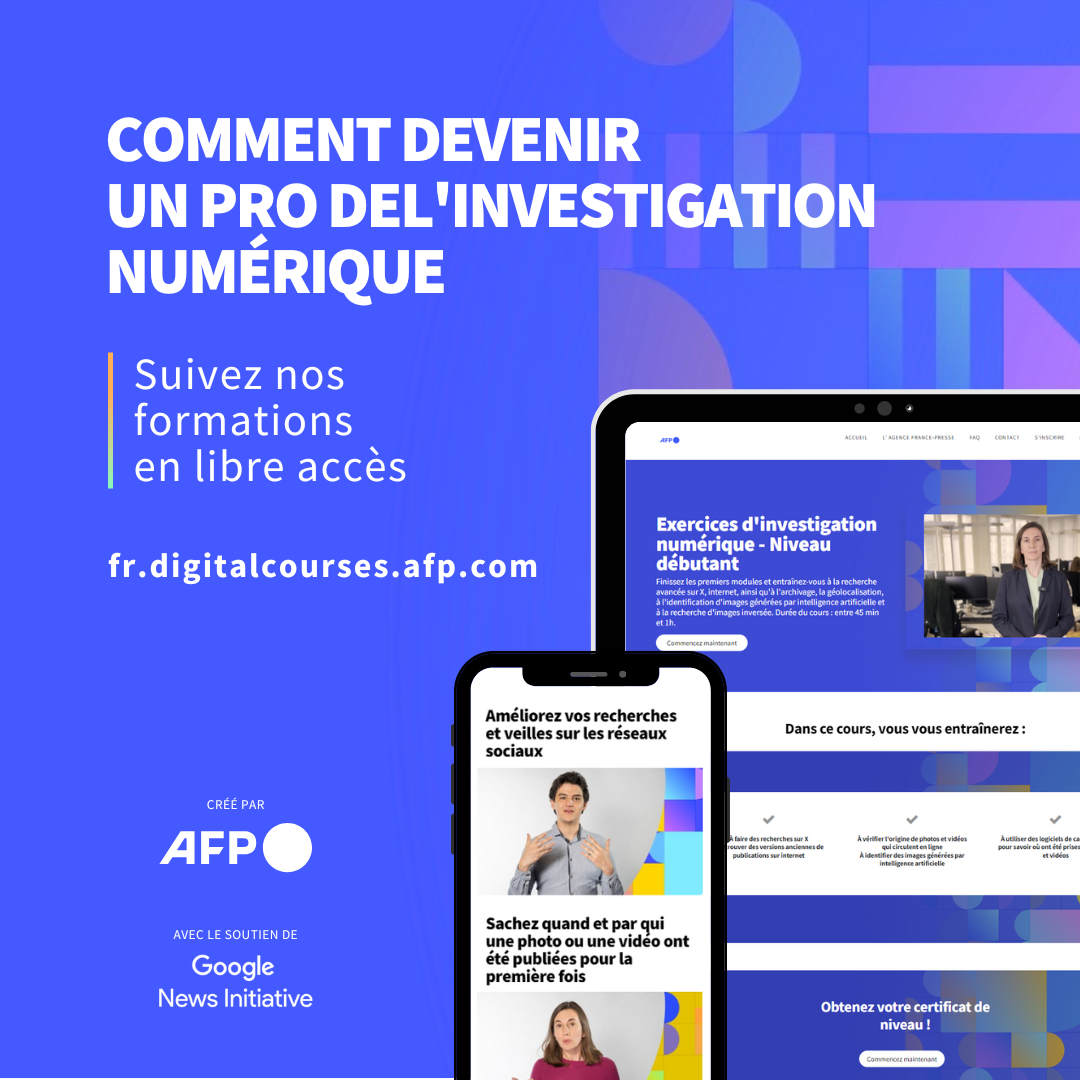 L’équipe a également créé une série de cours en ligne à destination des journalistes et des étudiants en journalisme, disponibles en accès libre sur la plateforme fr.digitalcourses.afp.com.