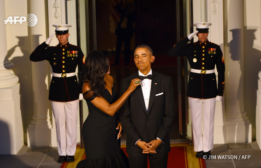Jim Watson reçoit également le prix d’excellence dans la catégorie « Presidential » pour sa photo de Michelle Obama ajustant le nœud papillon du Président Barack Obama sur le perron de la Maison Blanche, avant la réception donnée en l’honneur du président chinois Xi Jingping, en septembre 2015.