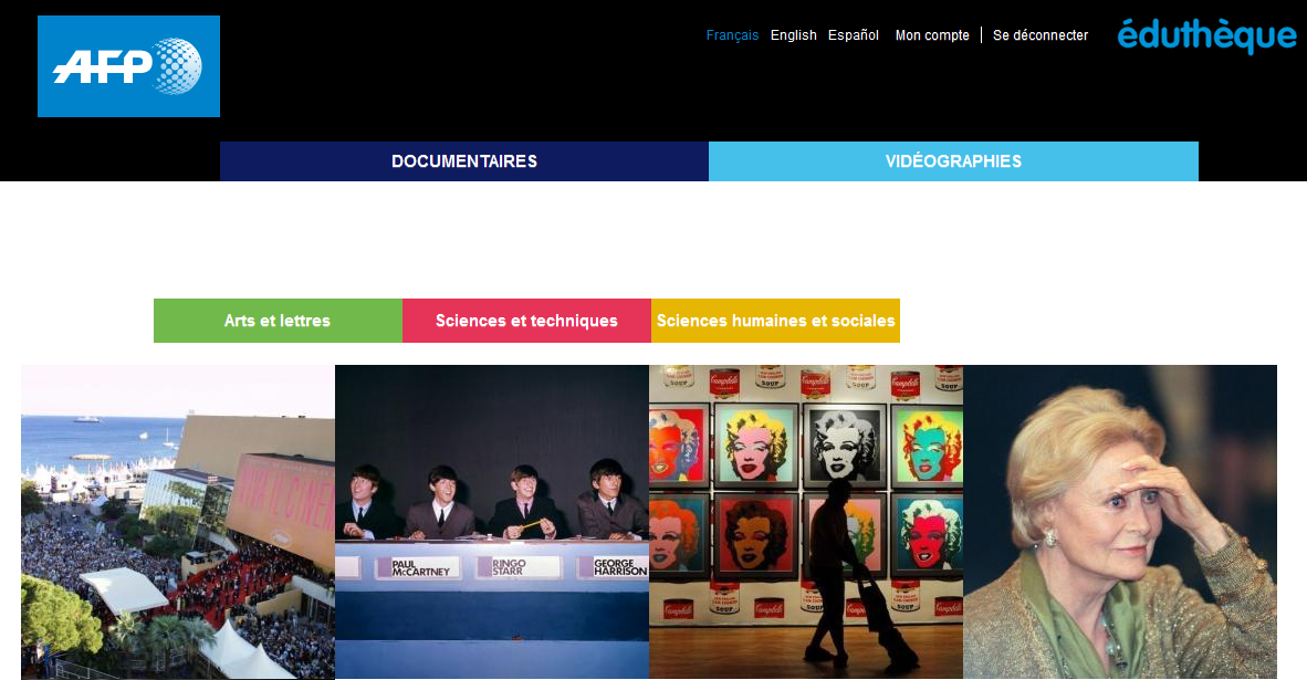Sur le portail Éduthèque, l’AFP donne accès aux enseignants du premier et du second degré à des dossiers d’archives et à une sélection de vidéographies pour un usage pédagogique en classe.