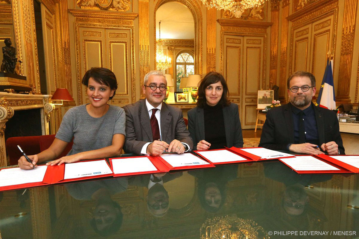 L’AFP, le ministère de l’Éducation nationale, de l’Enseignement supérieur et de la Recherche et l’association "Entre les lignes" ont signé lundi 21 novembre une convention de partenariat triennal pour renforcer l’éducation aux médias et à l’information (EMI) dans les établissements.
