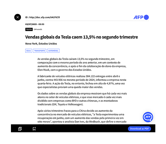 Ilustre as suas comunicações com fotos e vídeos da AFP.